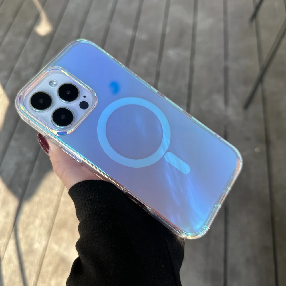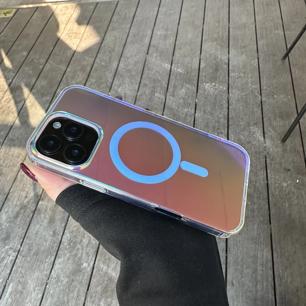 3D Stripe Gradient Aurora Magsafe Phone Case For iPhone 16 15 14 Plus 12 13 Pro Max 11 SE 4 Clear PC + TPU Magnetic Back Cover